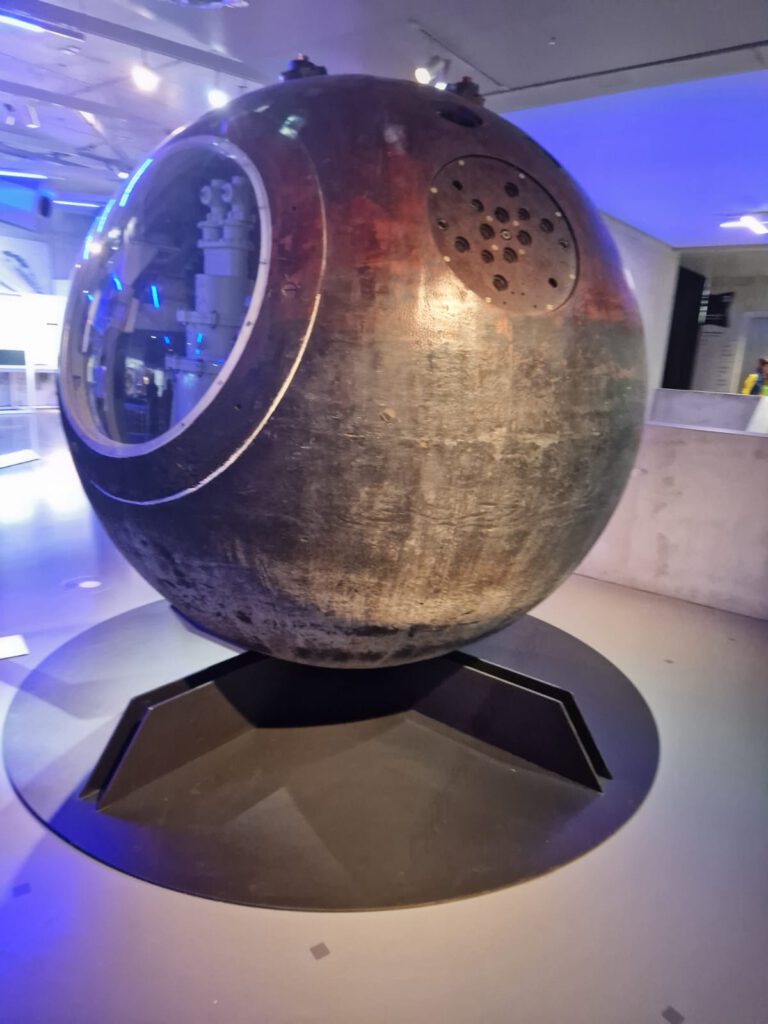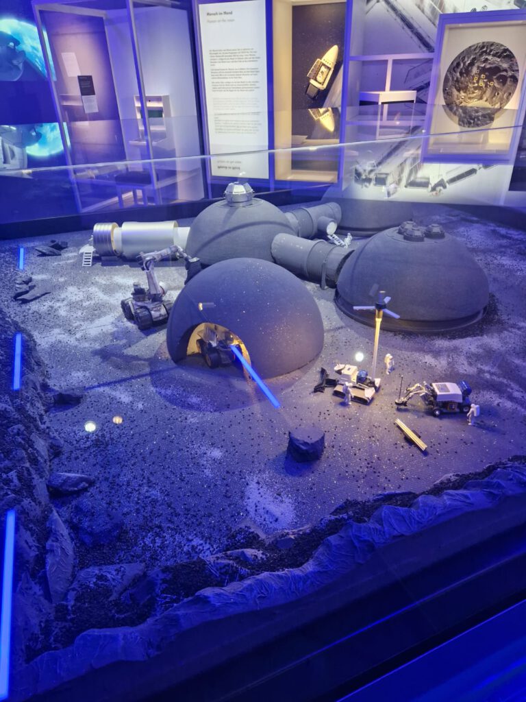 Schließlich bot das Museum beeindruckende Einblicke in die Zukunft der Raumfahrt. Während die „Old Space“-Ära stark von den USA und Russland geprägt war, setzt „New Space“ auf private Unternehmen und experimentelle Ideen. Gezeigt wurde unter anderem eine Rückkehrkapsel, die wieder erfolgreich zur Erde kam. Besonders der Mond gilt wieder als attraktiv. Konzepte wie Mond-Iglus und vollständig recycelte Luftversorgung sollen längere Aufenthalte ermöglichen. Gleichzeitig wächst im erdnahen Orbit der Weltraumschrott, inzwischen sind mehr als 10 000 Satelliten unterwegs, allein rund 8 000 stammen von Elon Musk. Sie werden unter anderem benötigt, um z.B. autonome Fahrzeuge zu ermöglichen, verursachen aber hohe Kosten und neue Risiken im Bereich Raumfahrt.
