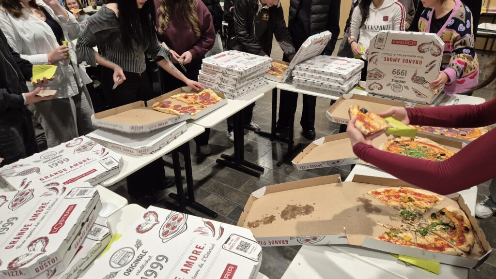 Umgehend wurde der Förderverein der FOS II kontaktiert, damit Pizzaboten aus allen Himmelsrichtungen der Stadt die Dorfbewohner mit den notwendigen Kalorien versorgen konnten, um die Werwölfe in die Flucht zu schlagen.