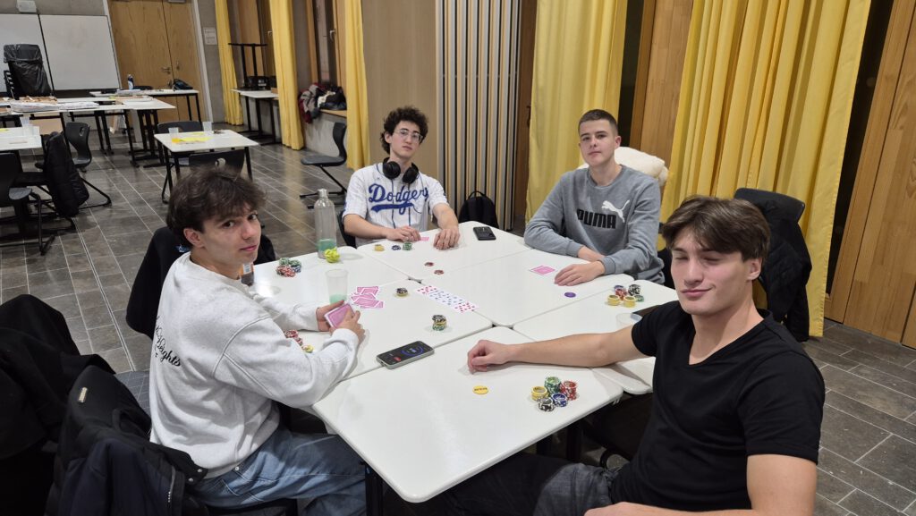 Nachdem das Schulhaus von den Dorfbewohnern zurückerobert wurde, konnte der gemütliche Teil des Abends beginnen. Bis tief in die Nacht wurde der Sieg über die Werwölfe bei einigen Runden Poker, Aktivity und Uno Extreme gefeiert.